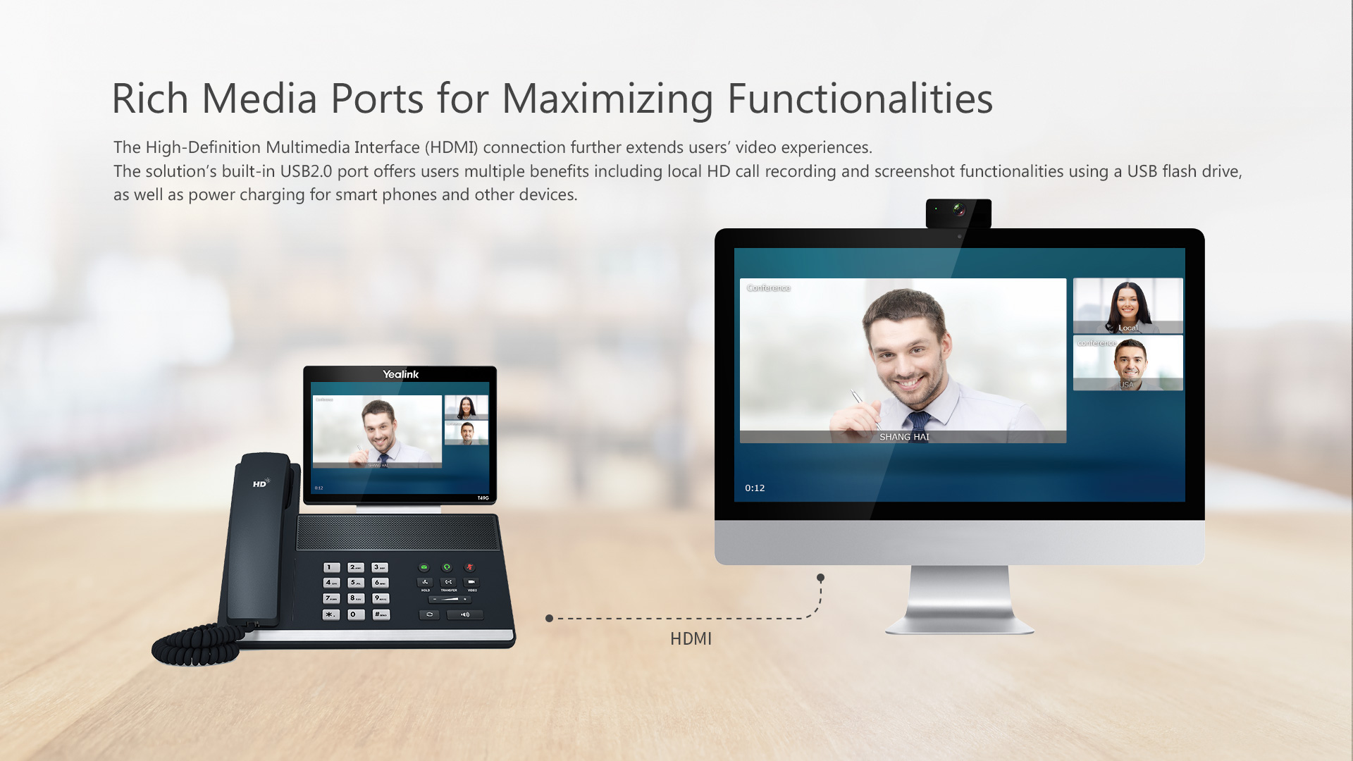 This incredible phone boasts an advanced HD front camera that supports 1080P resolution - the highest video quality standard for desktop phones. The solutions support for the H-264 High Profile further ensures smooth high-quality video.